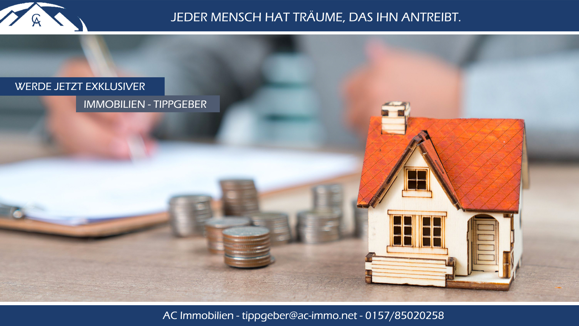 Verdienen Sie sich schnell und einfach Geld dazu, mit unserer Tippgeber Provision von 20% aus der, der AC IMMOBILIEN zufließenden Gesamtprovision (Netto).
